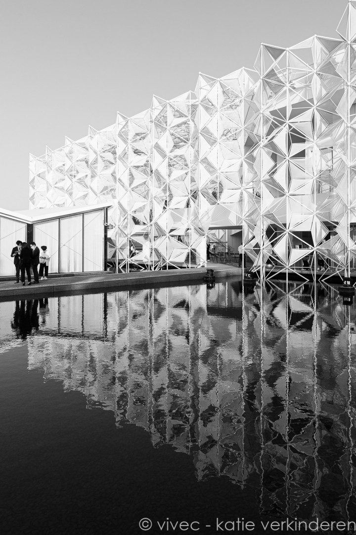 Ook op de expo laat Katie zich vooral door de architectuur betoveren. Ieder land zet zijn kennen en kunnen in de schijnwerpers in prachtig ontworpen paviljoenen. Op het gebied van design en architectuur is het een echte speeltuin.